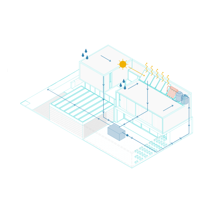 Minimizar el consumo de energía para no sobrecargar las infraestructuras de la ciudad fue otro de los ejes, con la idea de que la casa pueda independizarse e incorporar nuevas tecnologías ecosostenibles en el tiempo.