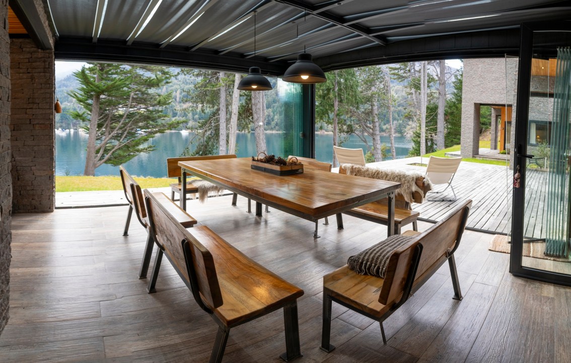 En Puerto Manzano, con vista al Nahuel Huapi y la cordillera, esta vivienda de amplios ventanales integra la vida cotidiana con el entorno natural. Materiales nobles y construcción en seco, claves del proyecto en esta maravilla neuquina que pasó de aldea de montaña a meca del turismo en la Patagonia.