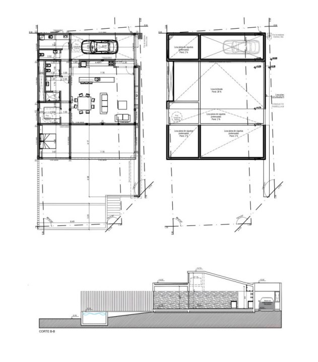 “El eje de composición de la vivienda tiene que ver con ese guiño a las construcciones de la villa. En algún punto la casa tiene semejanzas desde lo formal, con los techos y las lucarnas, como una especie de homenaje a la villa, que nos encanta en el estudio, nos parece una obra increíble. Y como nací ahí también era todo un desafío”, dice el arquitecto.