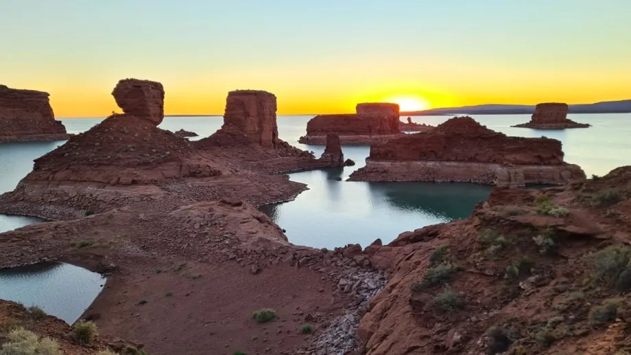 Las aguas del Limay contenidas por el enorme muro de la central hidroeléctrica le daban vida a ese lago que podía ser artificial y sin embargo se veían tan lindo, como tan real el encanto agreste que lo rodeaba, las formaciones rocosas que emergían, las huellas de los dinosaurios y el circuito histórico que recorría las viviendas de los empleados de la represa que llegaron a comienzos de los ‘70 a ese punto árido del norte de la Patagonia, habitado por entonces por crianceros con sus cabras y ovejas donde de repente todo cambió a orillas del río.