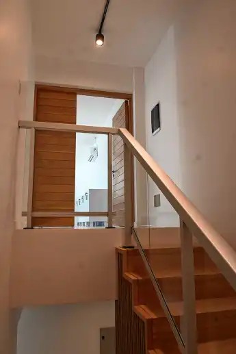 Estos espacios se vinculan de manera directa con un patio interior, que aporta iluminación natural, visuales abiertas y un ambiente calmo para el desarrollo de las tareas cotidianas.