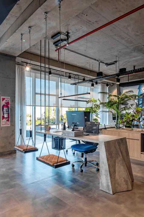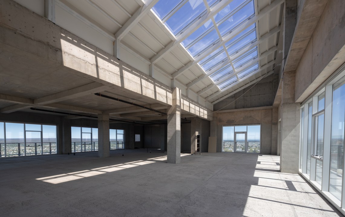 ¿Cuál fue el objetivo en las oficinas? La respuesta de los arquitectos: “La torre fue diseñada para albergar empresas de primera línea. Para ello se optó por plantas libres, que permiten a cada usuario definir su propio layout. Cada nivel cuenta con piso técnico, una altura libre de 3,00 metros y fachadas vidriadas de piso a techo, garantizando iluminación natural profunda y visuales abiertas hacia la ciudad. El núcleo de circulación se dispuso sobre el lado oeste, como un volumen disgregado, casi un edificio paralelo, que protege al conjunto de los vientos predominantes y hace legible el funcionamiento vertical del edificio”.