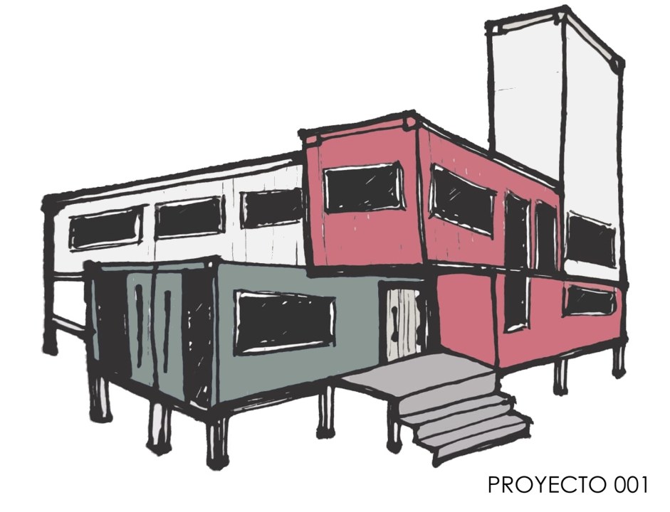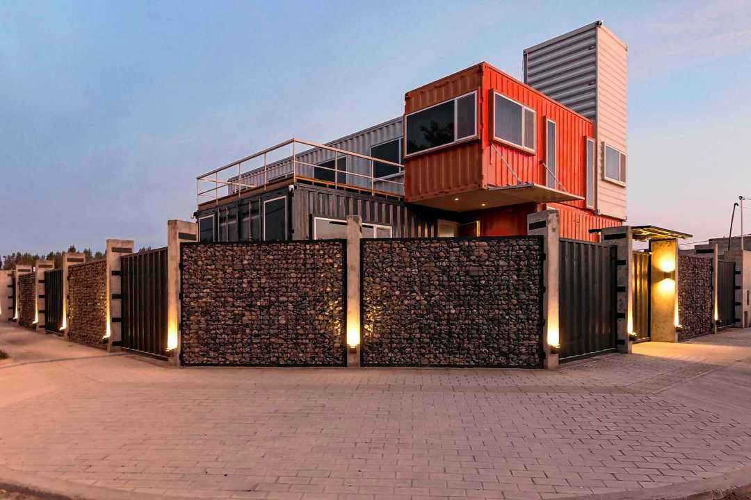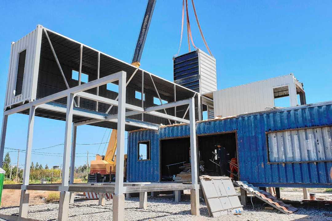 • Estructura metálica y contenedores marítimos recuperados.