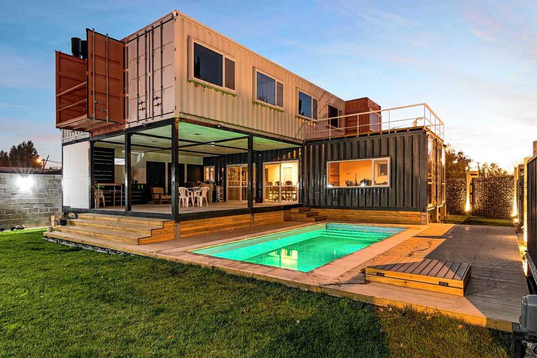 El vencimiento del contrato de alquiler apuró el final de obra y la familia se mudó en febrero del 2022. La fase dos, ya con menos urgencia, incluyó el cerramiento del lote, gaviones de piedra y chapas sobrantes de los contenedores, tabiques de hormigón, veredas, decks, pileta, parquizado y la parrilla metálica con sus dos chimeneas de chapa.  Los chicos fueron a la EPET 20 y fue una alegría para ellos escuchar los comentarios de admiración de los compañeros cuando se enteraban que vivían en la casa de los containers, centro de reunión desde entonces, para los chicos y los grandes. «Quedó hermosa, superó nuestras expectativas», dice Laura.