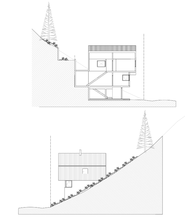 Las plantas se organizan de manera escalonada, creando una secuencia espacial donde el recorrido arquitectónico acompaña el ascenso natural de la montaña.