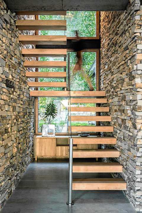 En cuanto a la materialidad de la vivienda, hay predominancia de los materiales en bruto, como el hormigón, la madera, el acero y la piedra. “Buscando siempre un bajo mantenimiento y elegancia en su expresión”, continúa la memoria descriptiva del estudio, que buscó una identidad propia y única en cada espacio que se pudiera recorrer de la vivienda.