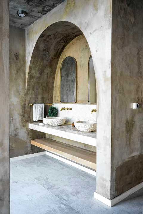 A primera vista impacta por su porte y la predominancia de materiales en bruto como el hormigón, la madera, el acero y la piedra.