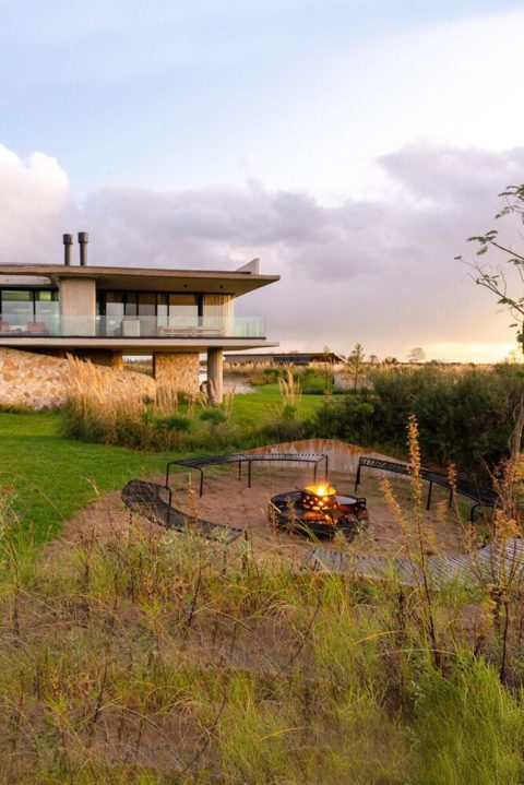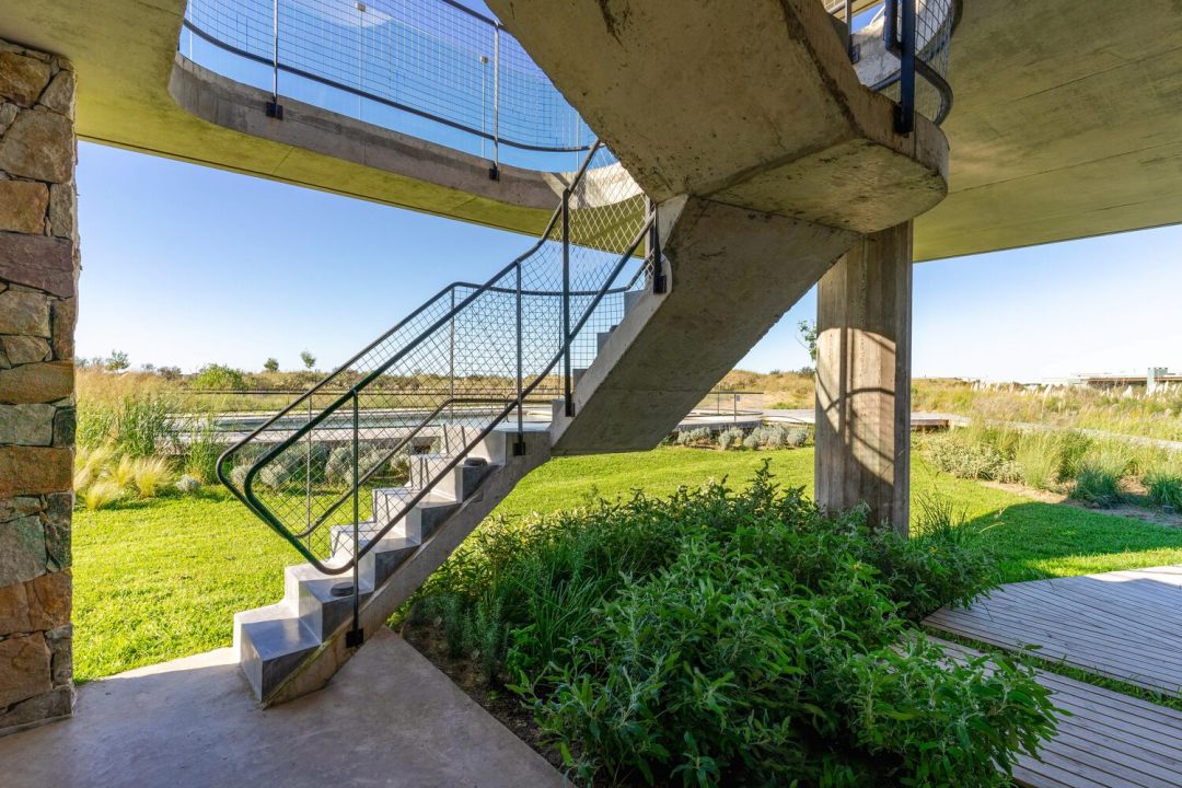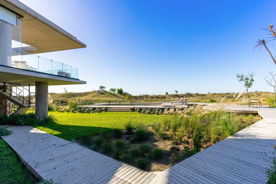 El diseño de paisaje acompaña esta idea, generando una pasarela que recorre todo el terreno y que va teniendo diferentes situaciones y actividades de esparcimiento como la pileta, el lugar de fogón, los juegos infantiles y las lomadas naturales del terreno.