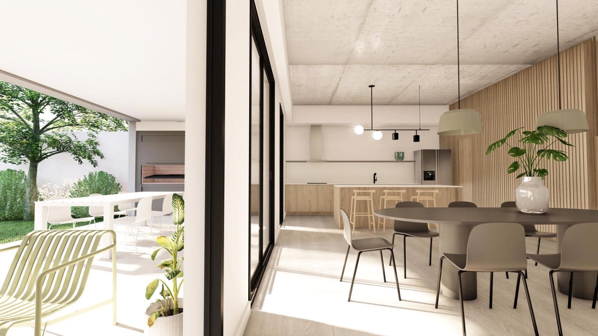 “Cuando los clientes nos mostraron los planos para que ejecutáramos esta obra en Centenario, notamos que le faltaba mucha definición al proyecto que ya tenían armado”, explican. En una primera etapa, tras varias reuniones, entre mate y mate quedó claro que les encantaba reunirse con amigos a cocinar y agasajarlos. “Por eso hicimos hincapié en el diseño de los sectores comunes. Definimos interiores, fachadas, forma y función de plantas y sobre todo la conexión con el espacio exterior donde se encuentra la piscina y la galería que serían el alma de esta obra”, dicen.