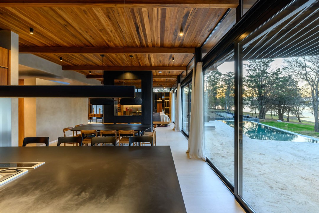 De acuerdo con la charla inicial con los propietarios, desde los primeros trazos del proyecto del estudio Paolini Arquitectos la casa buscó ser un puente generacional familiar, pero también entre el bosque y el lago y entre los anfitriones y las visitas. El concepto: un refugio multifuncional.