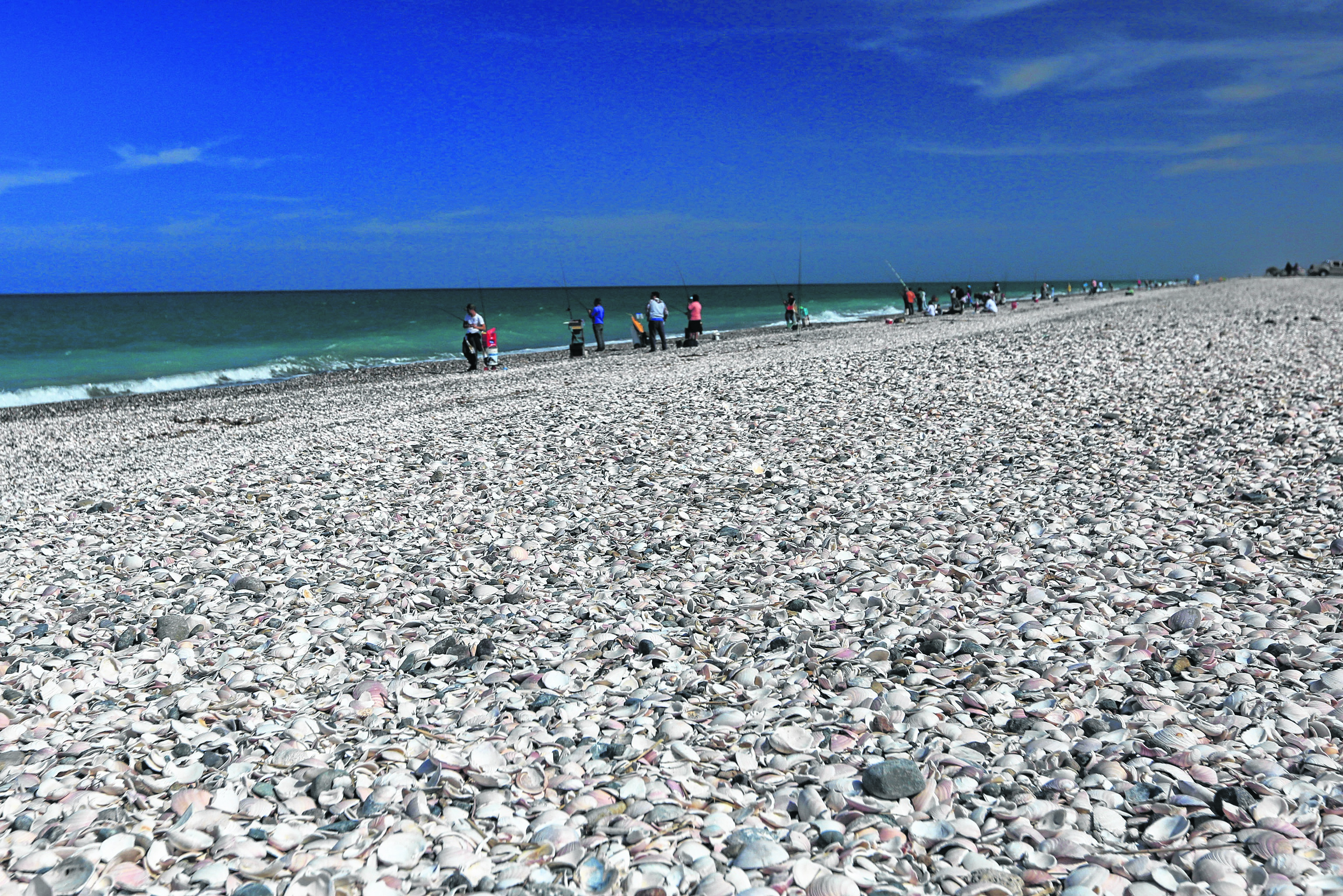 Otra playa encantadora, que deslumbra por su belleza, es La Conchilla, en el Puerto San Antonio Este, ubicado a 65 km de Las Grutas por ruta 3. Allí la arena está oculta por restos de valvas de moluscos erosionadas por el viento y el sol. Eso le da su característico color blanco, que contrasta con el azul intenso del cielo y del mar.