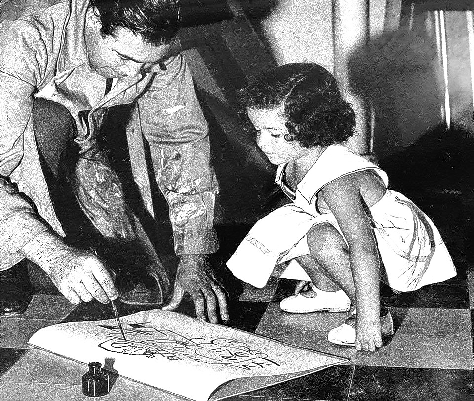 Padre e hija. Páez Vilaró y la pequeña Agó.