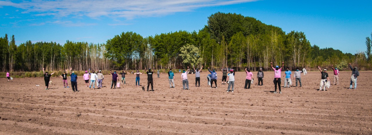 Muchos trabajadores de la Cooperativa JJ Gómez se sumaron a trabajar la tierra para producir alimentos para sus familias.