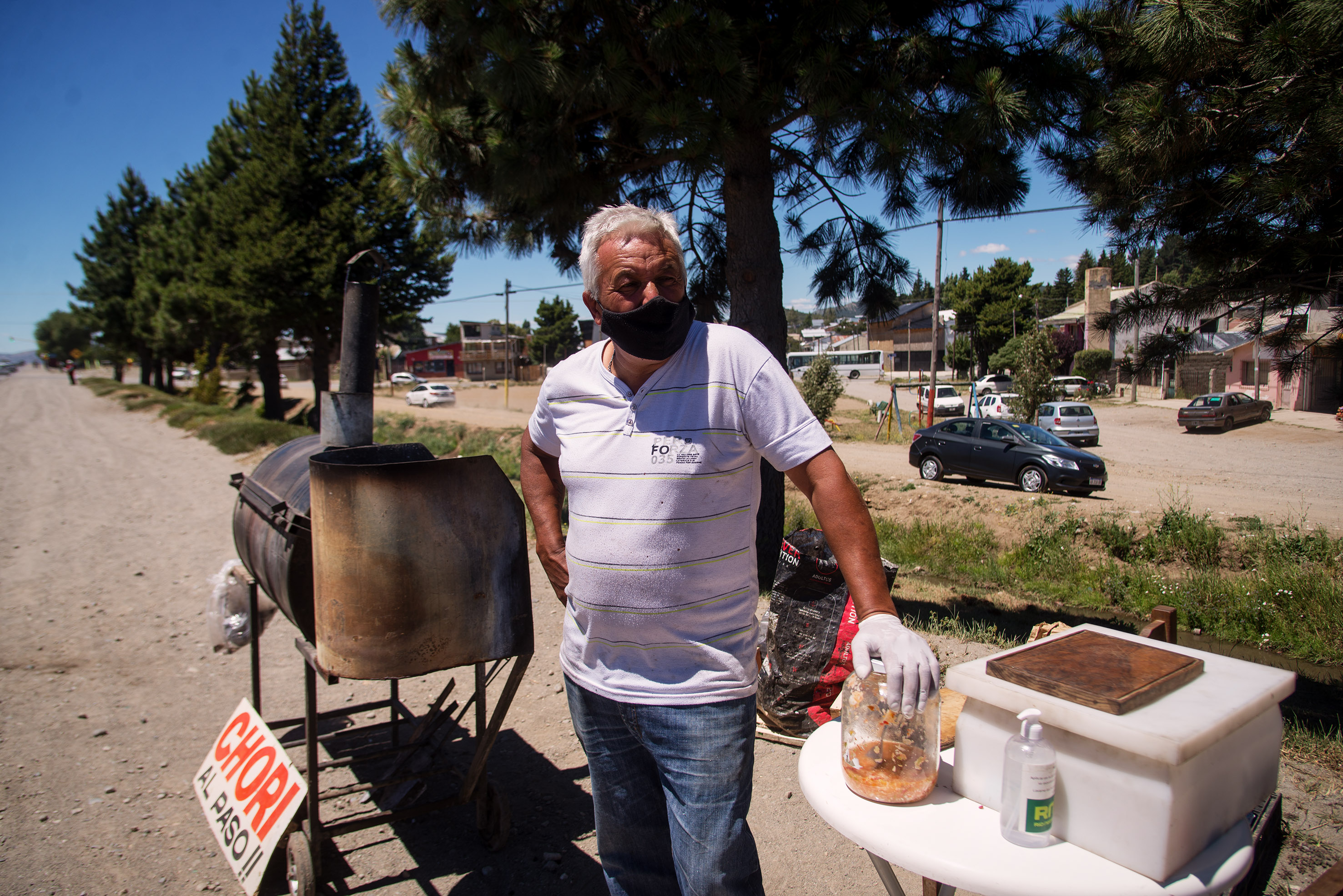 También sobre la avenida Juan Herman, a metros de Pasaje Gutiérrez, Omar Córdoba preparaba choripanes. Este hombre de 60 años era chofer de remis pero con el inicio de la pandemia y la reducción del horario para circular, decidió «reinventarse«.