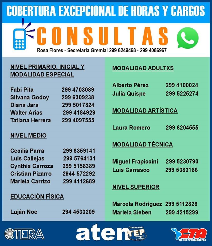 El gremio docente también publicó una lista de contactos telefónicos para atender consultas.