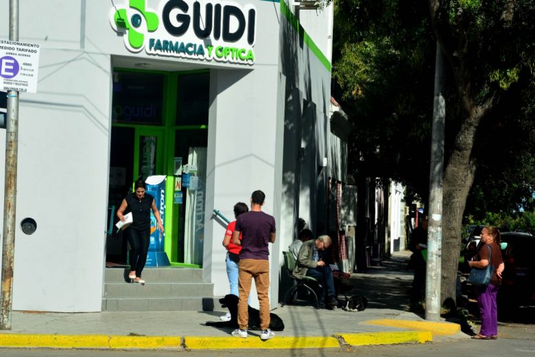 También otros comercios de alta demanda, como las farmacias, cumplen con lo dispuesto en cuanto a restringir la cantidad de gente dentro de los locales y, algunos, ofrecen comodidades para sus clientes en la vereda.