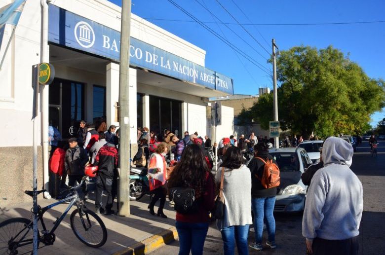 La cantidad de gente desborda las diferentes entidades, en especial en la única sucursal del Banco Nación donde se abonan la mayoría de las jubilaciones, pensiones y las asignaciones por hijos y embarazo.