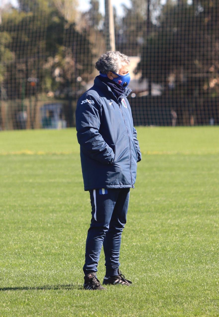 Una de las imágenes particulares de la jornada se vio en el entrenamiento de Lanús, donde su Luis Zubeldía, su entrenador, dirigió desde un mangrullo y con un megáfono para evitar el acercamiento a sus jugadores.