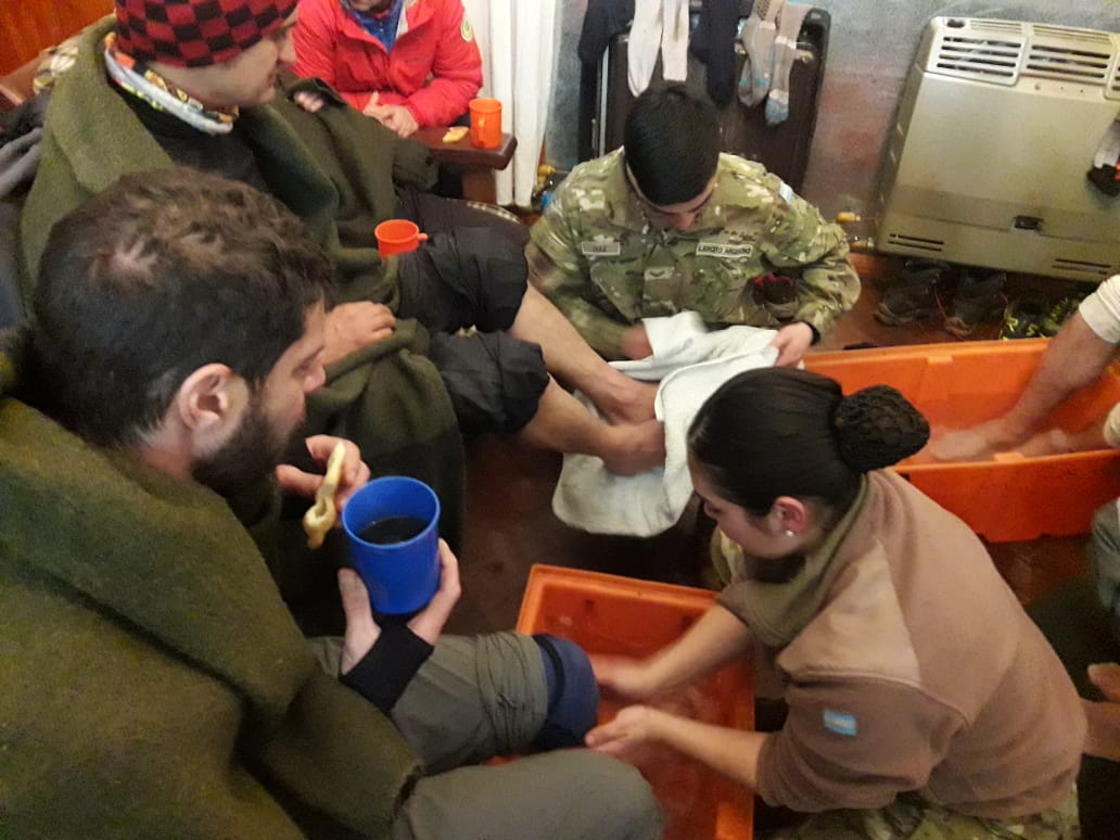 El uniformado reconoció que la pericia del guía, que participaba del grupo mayoritario, fue clave para que todos puedan resistir las largas horas sin luz. En ninguno de los dos equipos las personas llevaban ropa preparada para soportar un clima tan hostil.