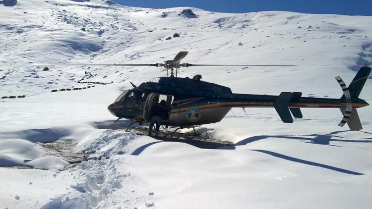 En tanto en el helicóptero sobrevolaron la zona de difícil acceso los presidentes de las comisiones de fomento Gastón Fuentes de Varvarco y Rubén Aravena de Manzano Amargo y Mario Ferreyra de Defensa Civil de Chos Malal, recorriendo los parajes La Crianza, Pichi Neuquén, Los Cerrillos, la Pampa Ferraína en plena Cordillera del Viento y Riscos Bayos en la zona de Tricao Malal.