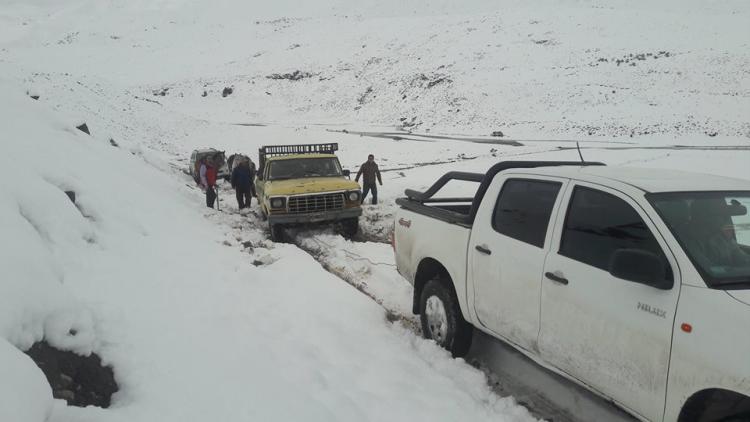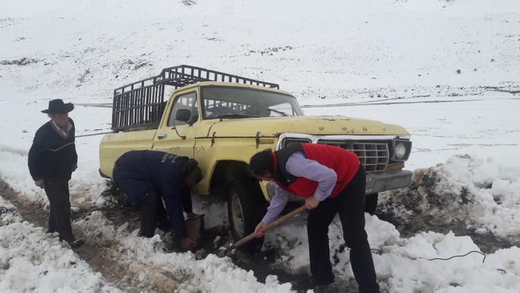 Se pusieron en marcha todos los mecanismos para llegar con asistencia en víveres, leña y gas a una veintena de crianceros trashumantes que fueron sorprendidos por un atípico temporal de nieve que en algunos sectores alcanzó casi un metro y medio. Por tierra y aire se llegó a distintos parajes de la zona y esperan que en la jornada de hoy los crianceros puedan bajar hasta Manzano Amargo y Varvarco para estar a resguardo y luego determinar cómo los trasladan a las invernadas. Hace más de 50 años que no se registra un temporal en abril, los que habitualmente se producen en mayo.