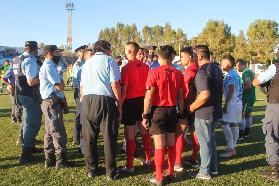 «Tomamos la decisión de suspenderlo porque no estaban dadas las garantías de seguridad. Se consensuó con el jefe del operativo policial», aseguró el árbitro del encuentro, Facundo Acosta, en diálogo con Río Negro.