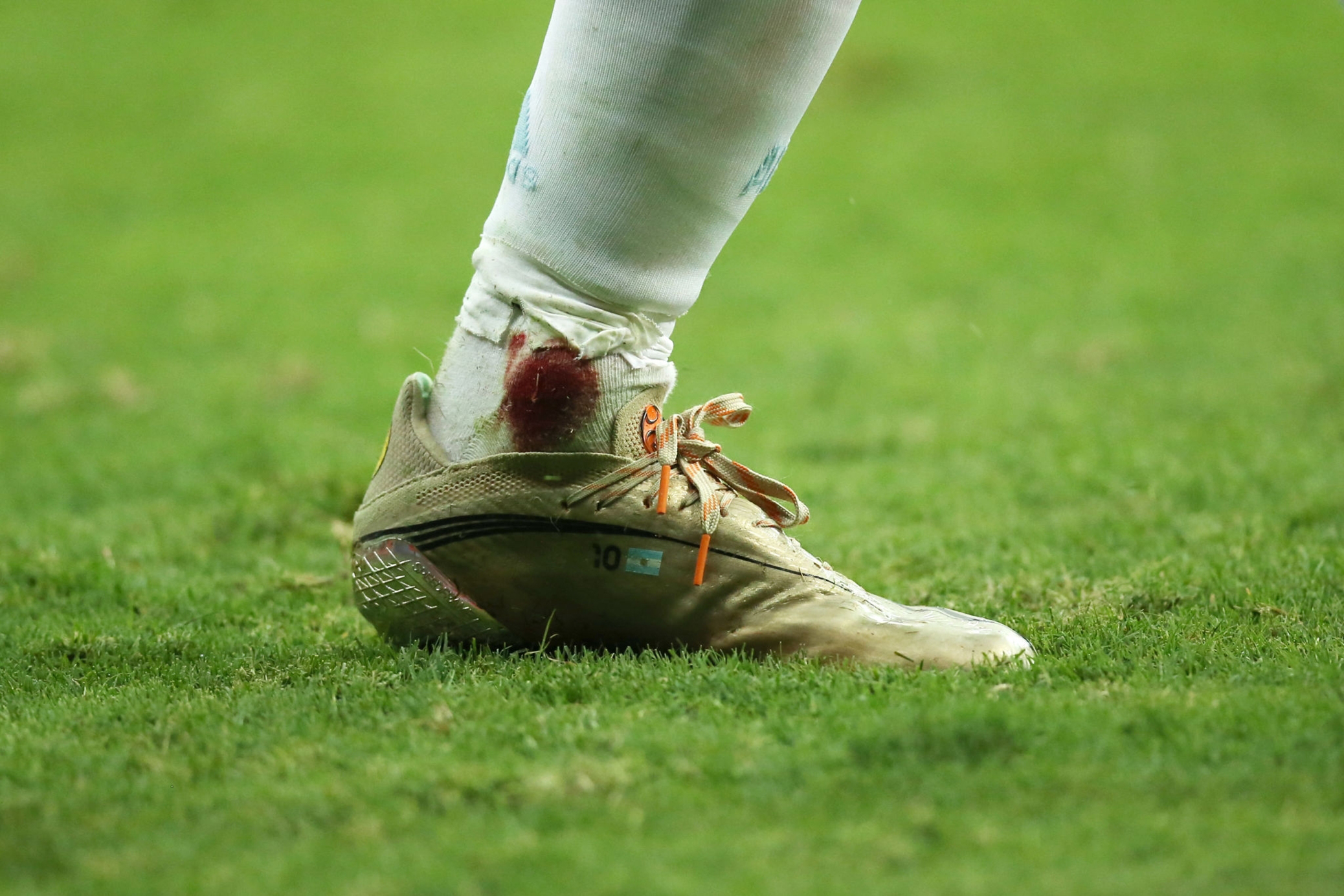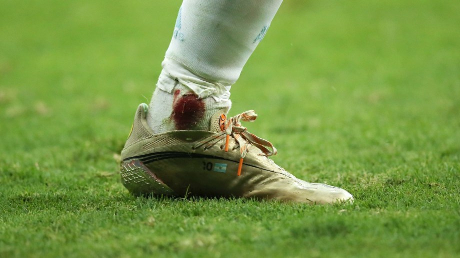 Fabra le pidió disculpas a Messi, quien las aceptó y siguió jugando pese a que su tobillo quedó visiblemente dañado. Así lo demuestra la imagen, en la que se ve la sangre tomando la media del astro argentino.