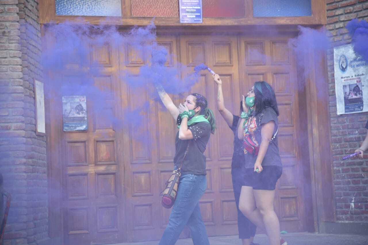 La ruidosa protesta de pañuelos verdes duró alrededor de 45 minutos. Estuvieron presentes organizaciones sociales como: La Revuelta, Isadora, Pan & Rosas, Libertas, Mumalá entre otras.