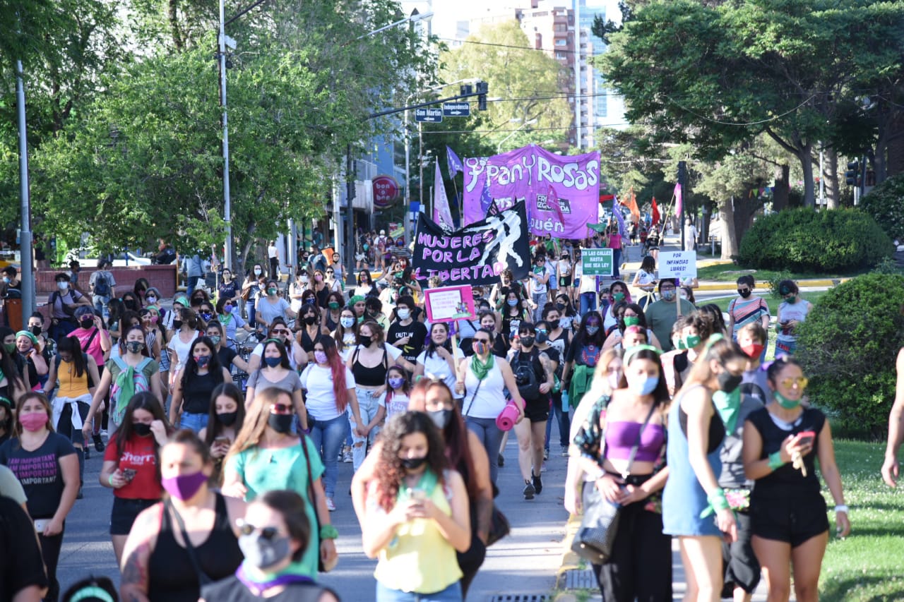 En la capital rionegrina, la concentración se inició en la fuente Pucará y cientos de personas recorrieron las arterias de la ciudad. La gran columna se detuvo frente al Poder Judicial y la Catedral de Viedma.