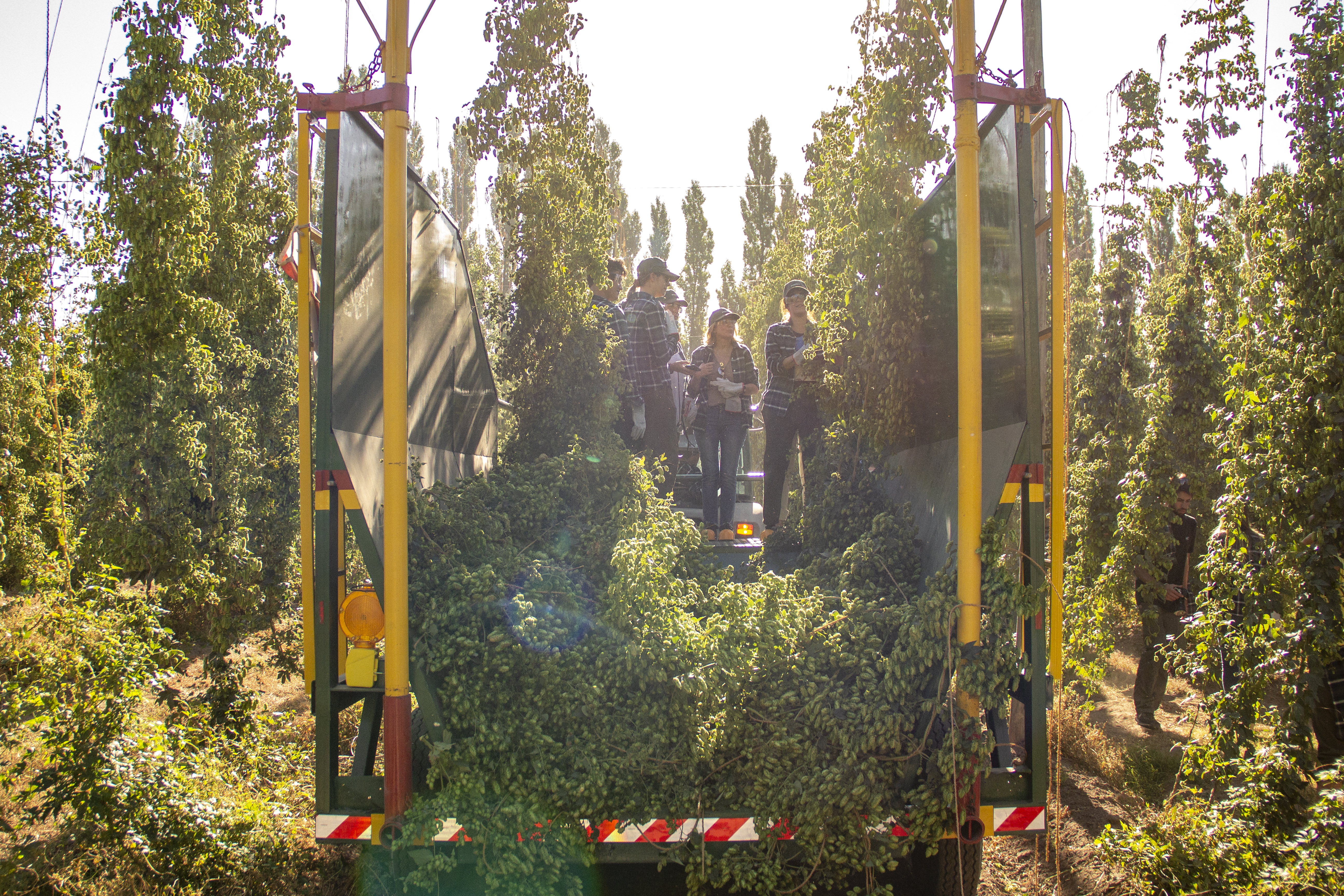 Dicho esto invitó a pasar a recorrer los cultivos y a cosechar. Una experiencia increíble. “Para escribir sobre cerveza lo ideal es cosechar primero”, comentó entre risas uno de sus colegas de trabajo. El calor partía el suelo en la chacra. Además hubo que ponerse una camisa bien gruesa y pantalones largos para no rasparnos. Nada impidió que fuera una fiesta. Después vino un recorrido por la planta donde se separa la flor del lúpulo de la rama.