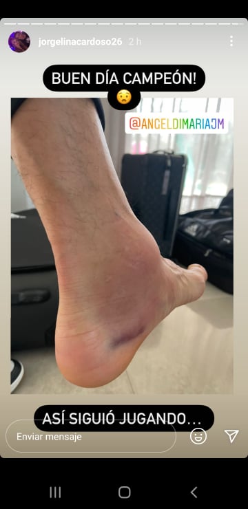 «Así siguió jugando», fue el mensaje de Jorgelina Cardoso, esposa de Fideo, que acompañó la impactante imagen luego compartida por el futbolista.