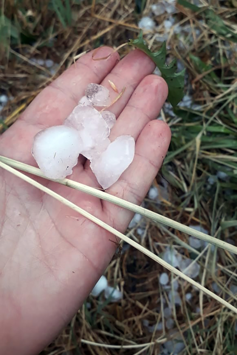 En algunas partes, el granizo se precipitó durante unos cinco minutos y luego fue acompañado por abundante agua, tal como indicaba el pronóstico meteorológico.