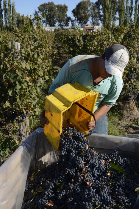 Este año, según comentó Juan Verdugo, propietario de la chacra, el rendimiento por hectárea plantada con Malbec será algo inferior, aunque siempre por encima del promedio que entrega la variedad en la zona. “El año pasado una hectárea de estas me dio 17.000 kilos” comenta con orgullo.