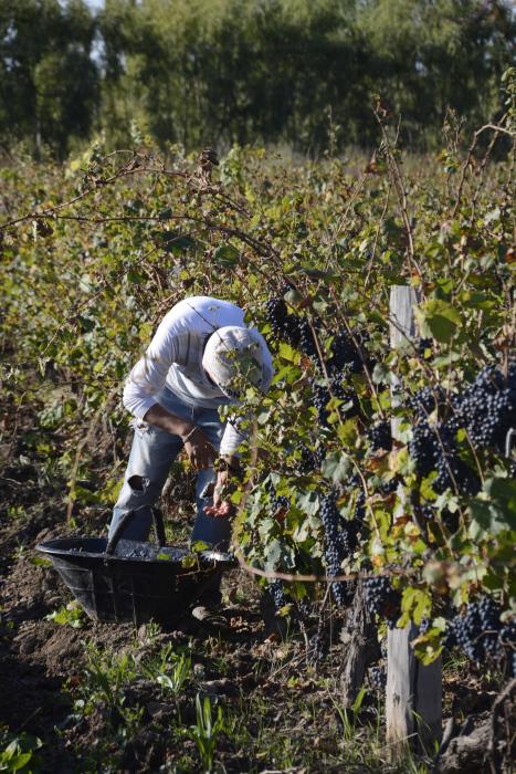 En ese sitio la cosecha de uvas para vinificar comenzó hace unos pocos días y se extenderá casi hasta fines de abril. Hay trabajo para unos 25 días de acuerdo al ritmo y a la cantidad de gente que se juntó para trabajar.