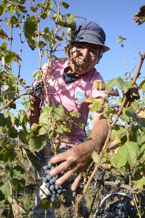 El año pasado esa misma superficie entregó 84.000 kilos de uva tinta de la variedad estrella, pero en el terreno se entreveran algunas variedades blancas de menor valor como torrontés riojana o torrontés mendocina, también llamada loca blanca, esta última de poco valor enológico.