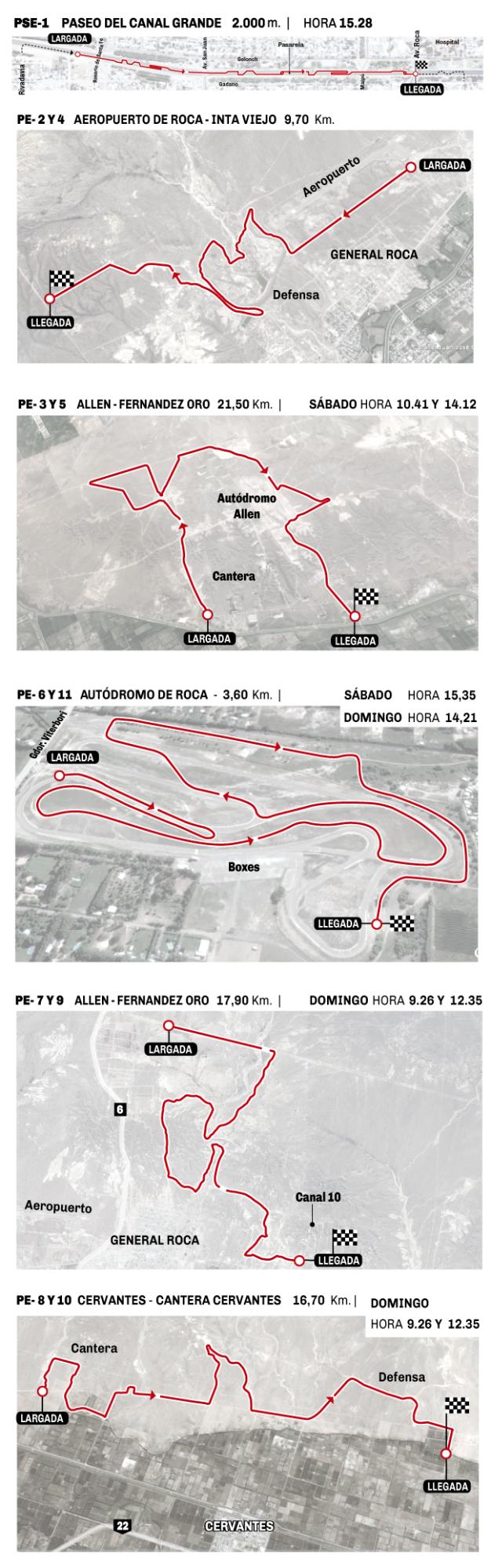 Mañana domingo será momento para los tramos Ruta 6 – Stefenelli, Arenera Cervantes – Cervantes y autódromo Roca (ver recorridos acá). La actividad comenzará a las 9.23.