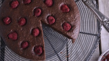 Audio receta de bizcochuelo de chocolate y frambuesa sin gluten y vegano