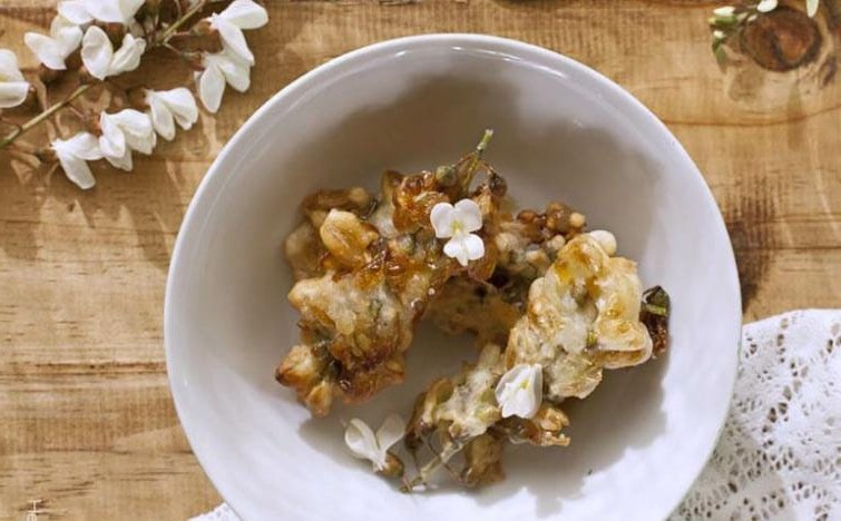 Audio receta de flores de acacia blanca rebozadas y fritas
