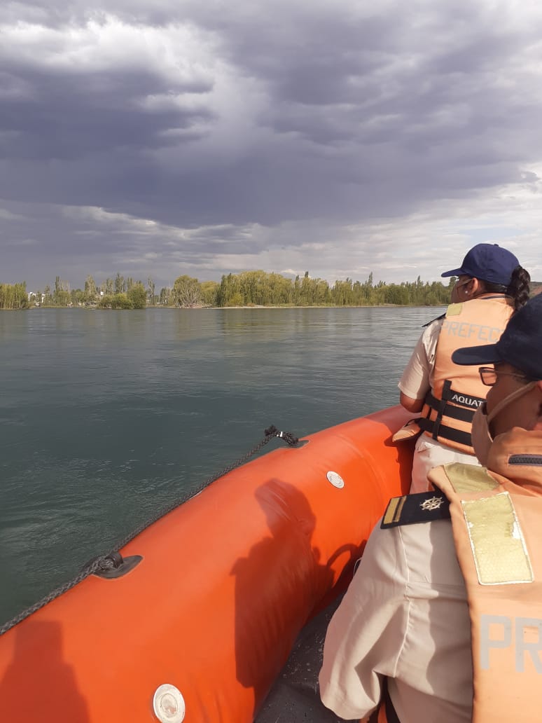 Prefectura recorrió la ribera, mientras que la los Bomberos de Cipolletti, Defensa Civil y Prefectura realizaron el rastrillaje por el agua.