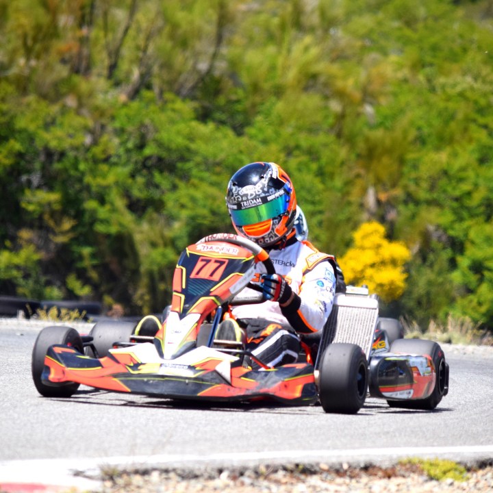 Diego Diéguez tuvo un comienzo soñado en la categoría seniors del Pro Kart, que estreno su certamen en la Isla Jordán. Gentileza.