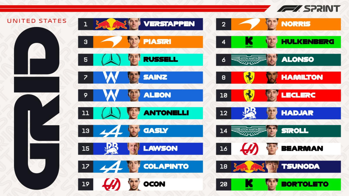 Cómo quedó la grilla de largada para la Sprint de Estados Unidos