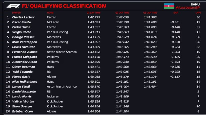 «Tengo muchas ganas, es un momento muy lindo en mi carrera. Mi segunda carrera en Fórmula 1, primera vez en Q3, son varias cosas nuevas que voy sumando finde tras finde y vamos por el buen camino. El equipo trabaja muy bien, me apoya y esto es fruto de esa confianza que me dan, así que es parte de ellos este resultado», culminó Colapinto, con ansias de lo que será la gran carrera final del Gran Premio de Azerbaiyán.