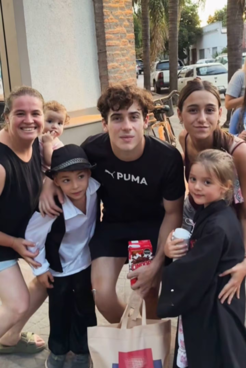 Colapinto se sacó fotos con los fanáticos a la salida del supermercado.