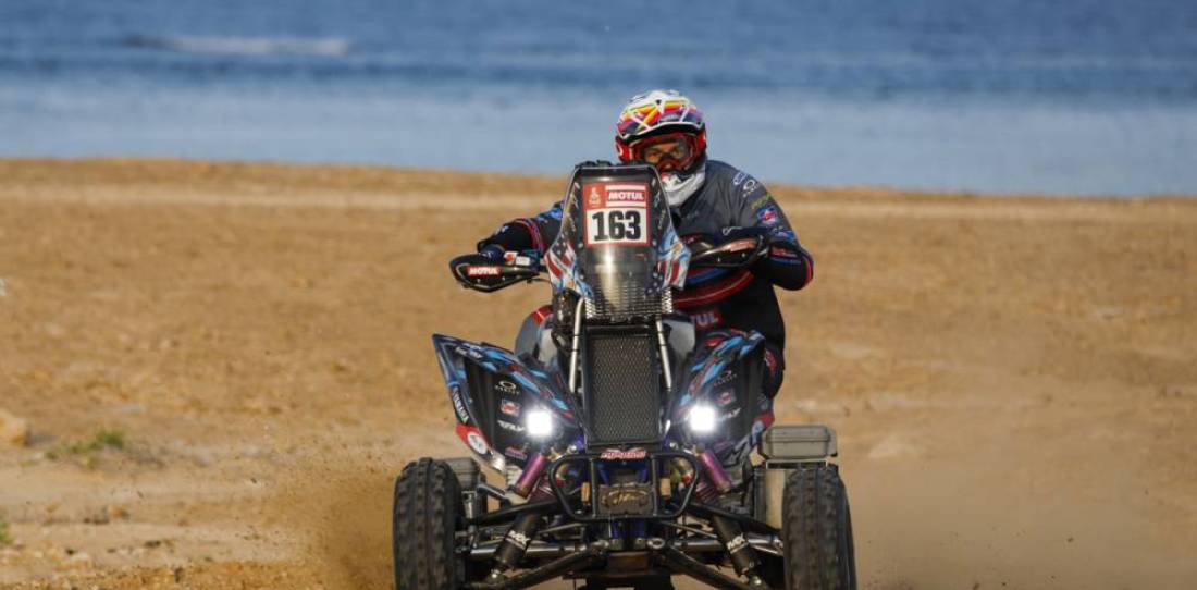 Francisco Moreno Flores cumplió con el objetivo de ganar su primera etapa en el Rally Dakar y le descontó unos minutos al campeón Alexandre Giraud, el líder en cuatriciclos. Gentileza.