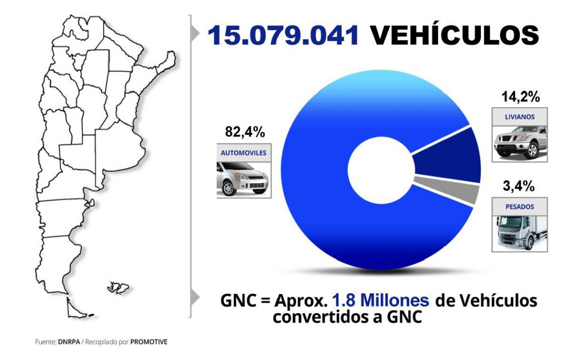 De acuerdo al tipo de combustible, los vehículos exclusivamente a nafta son el 63% de la flota y los diesel son el 24,8%.