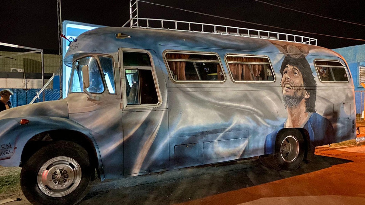 El vehículo tiene en sus costados las imágenes de Lionel Messi y Diego Armando Maradona, embanderados con los colores celeste y blanco.