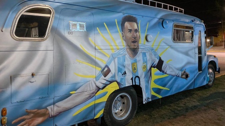 A 724 kilómetros de distancia, en la localidad de Río Tercero, Córdoba, un vecino decidió homenajear a la «Scaloneta» con un diseño de Lionel Messi en su vehículo Bedford, modelo 1963, que fue adaptado a un motorhome.