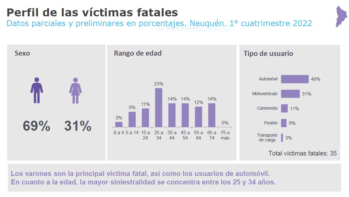Además, la mitad de las víctimas fatales en Río Negro y Neuquén eran personas jóvenes cuyo rango de edad va de 15 a 44 años.