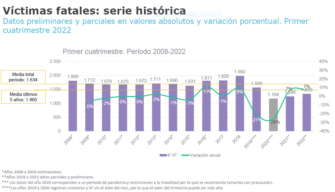 A partir de ahí los números comenzaron a crecer nuevamente. Entre enero y abril de 2021 las víctimas fatales en siniestros viales fueron 1.248 y en similar período de este año la cifra trepó a 1.339.