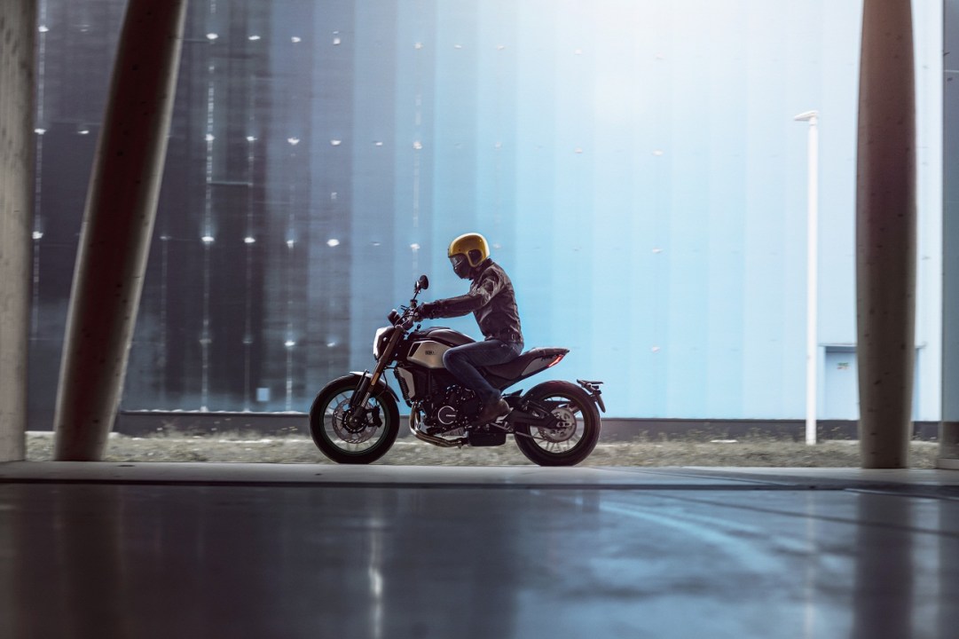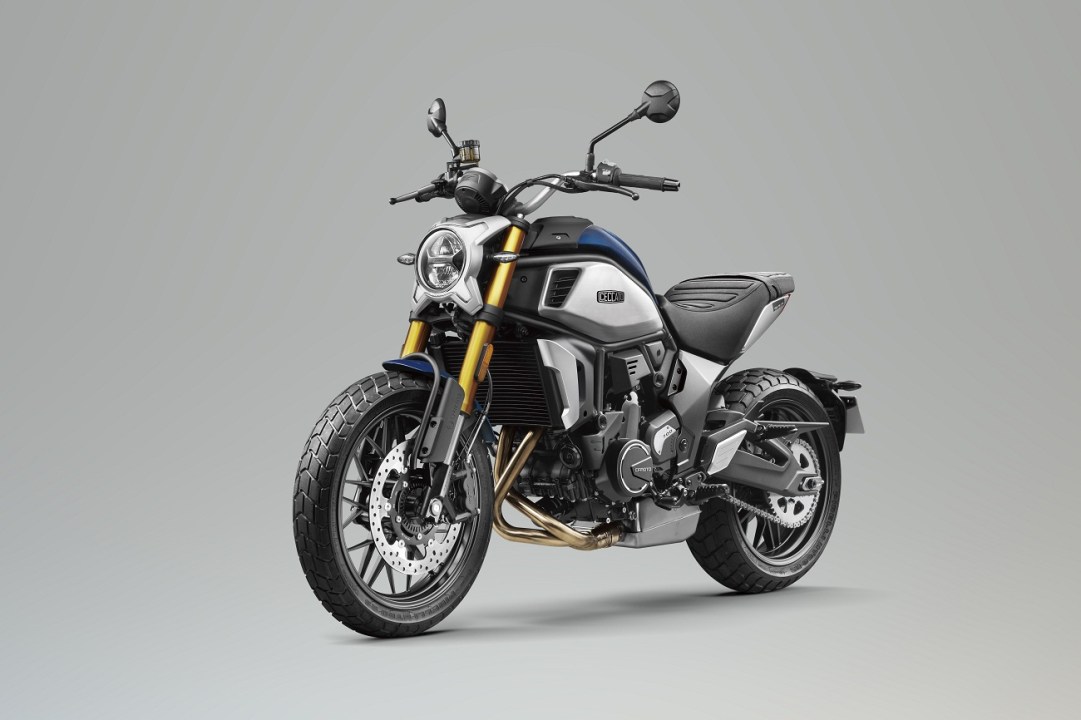La Ceccato X 700 se destaca por el faro redondo de inspiración retro, la luz trasera incorporada en el colín, los paneles laterales de aluminio del tanque de combustible, el asiento de cuero, las llantas de aleación de radios múltiples y los neumáticos multipropósito.